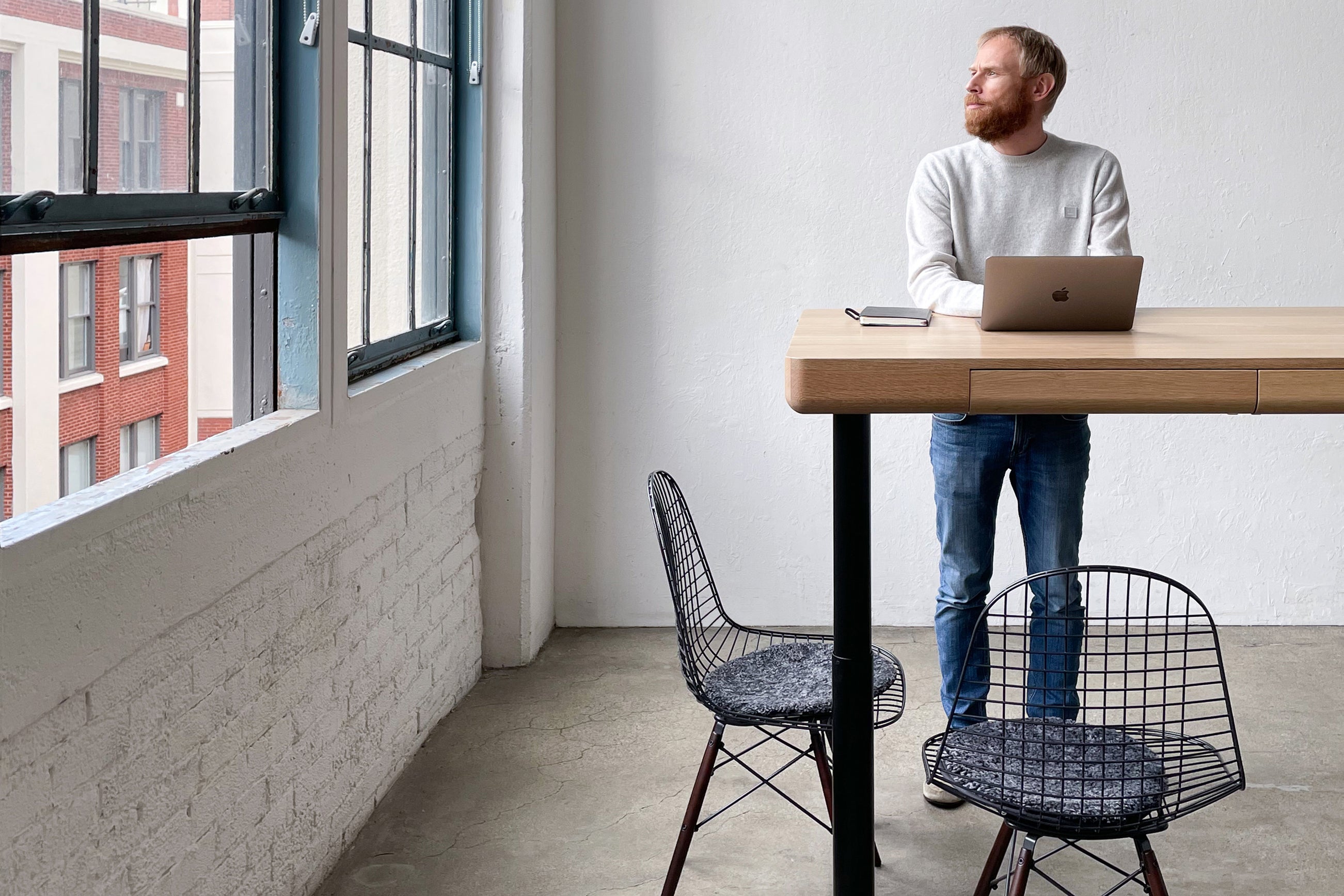 The award-winning, Eat-Work Table is designed for flexibility in mind. A wireless height-adjustable table for dining and working. All electronics are concealed.