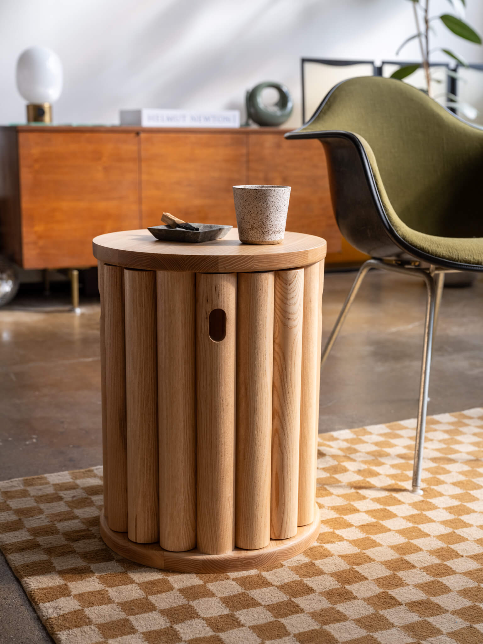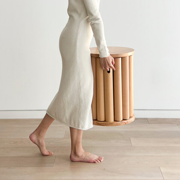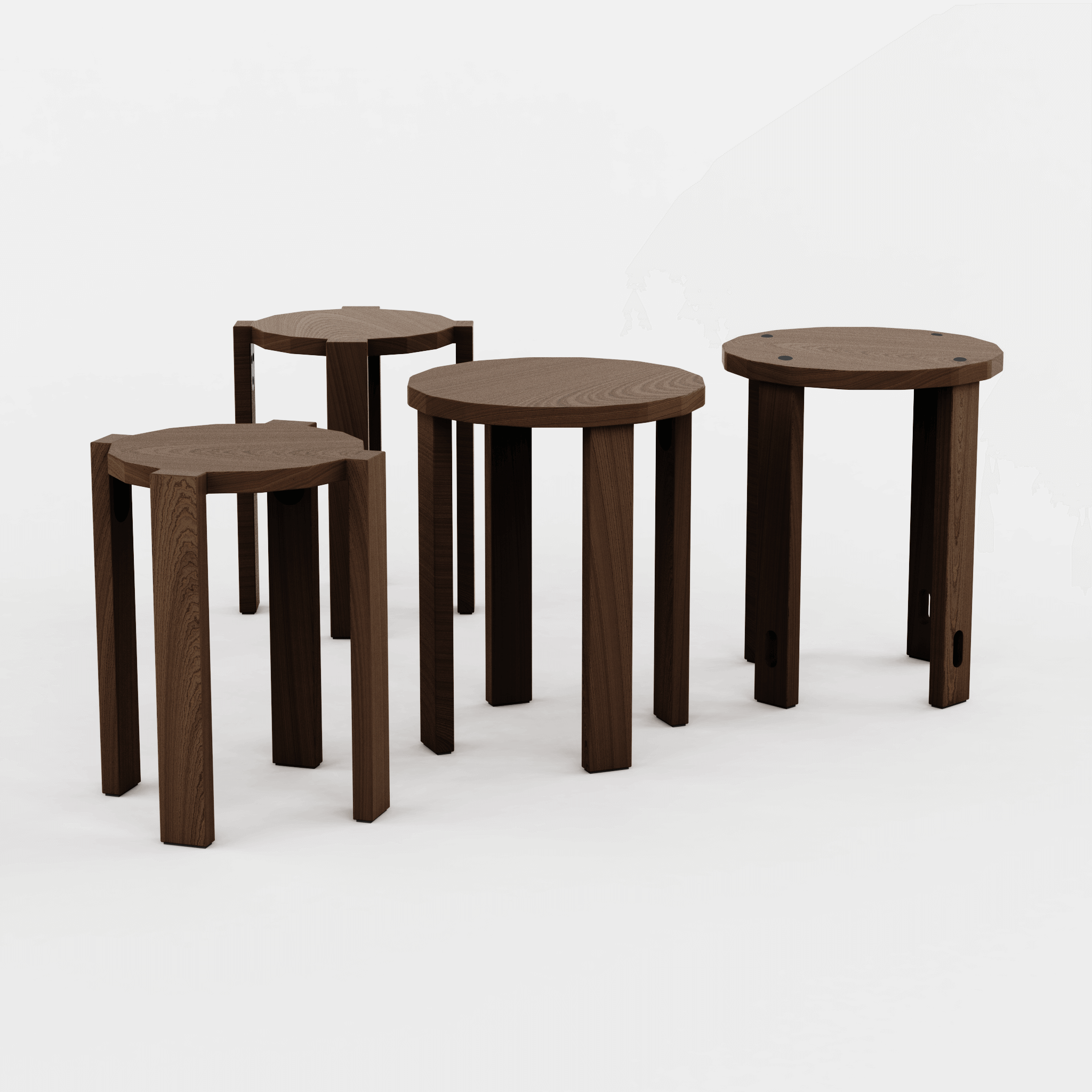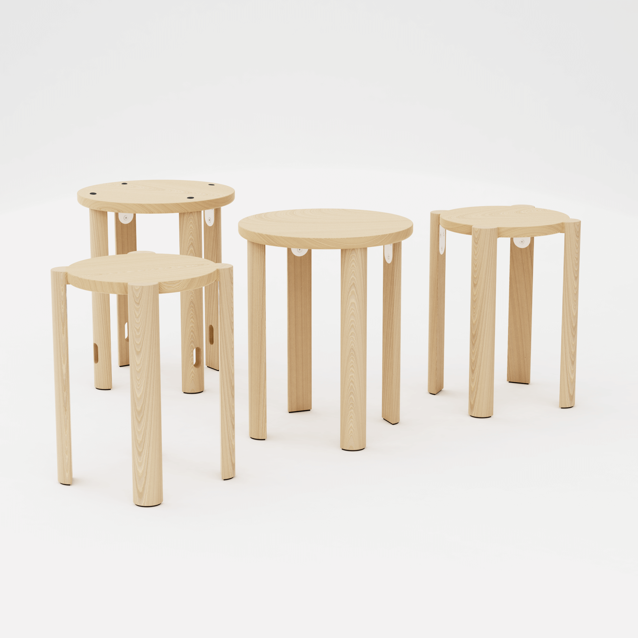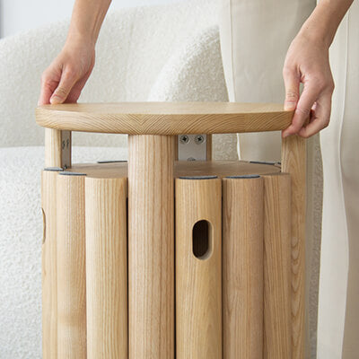 The Quartet is a side table that turns into four stools. This award-winning and multi-functional piece was created so you can easily invite friends over.