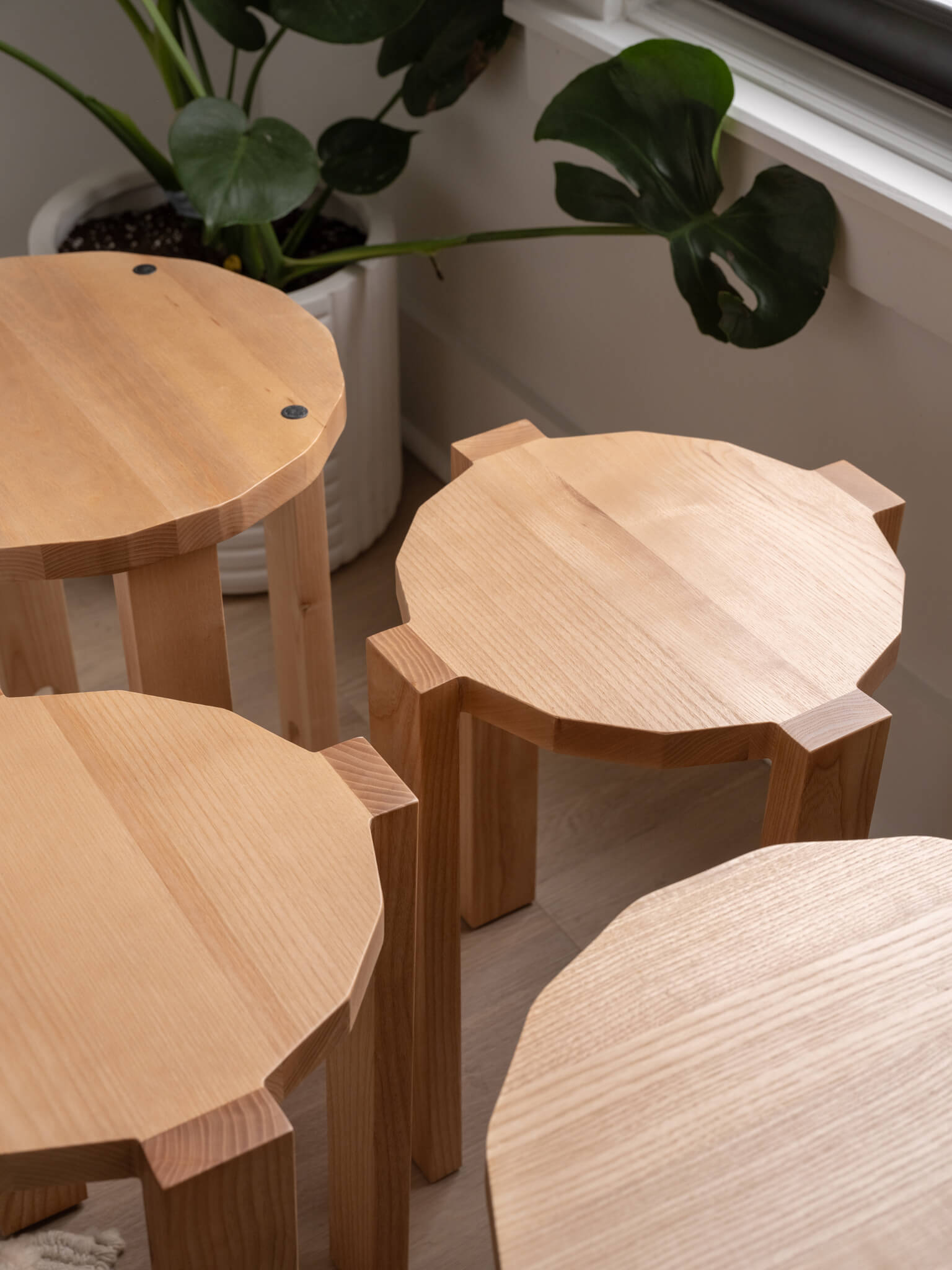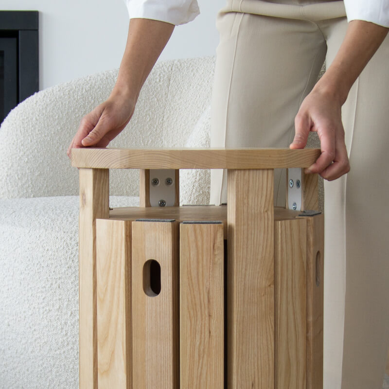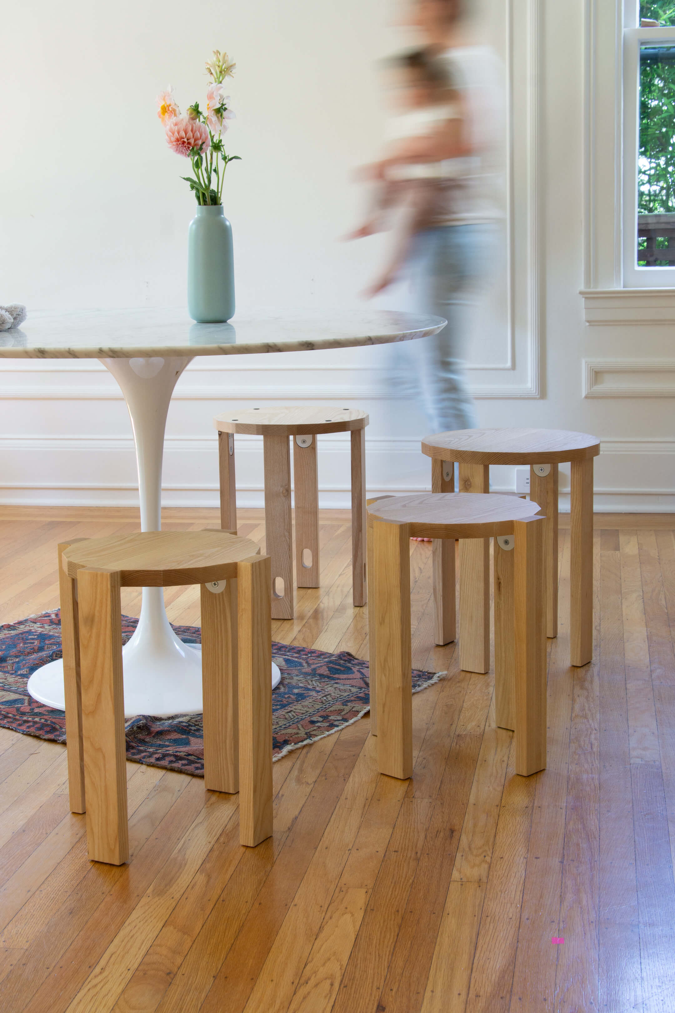 The Quartet is a side table that turns into four stools. This space saving and multi-functional piece was designed so you can easily invite friends over.