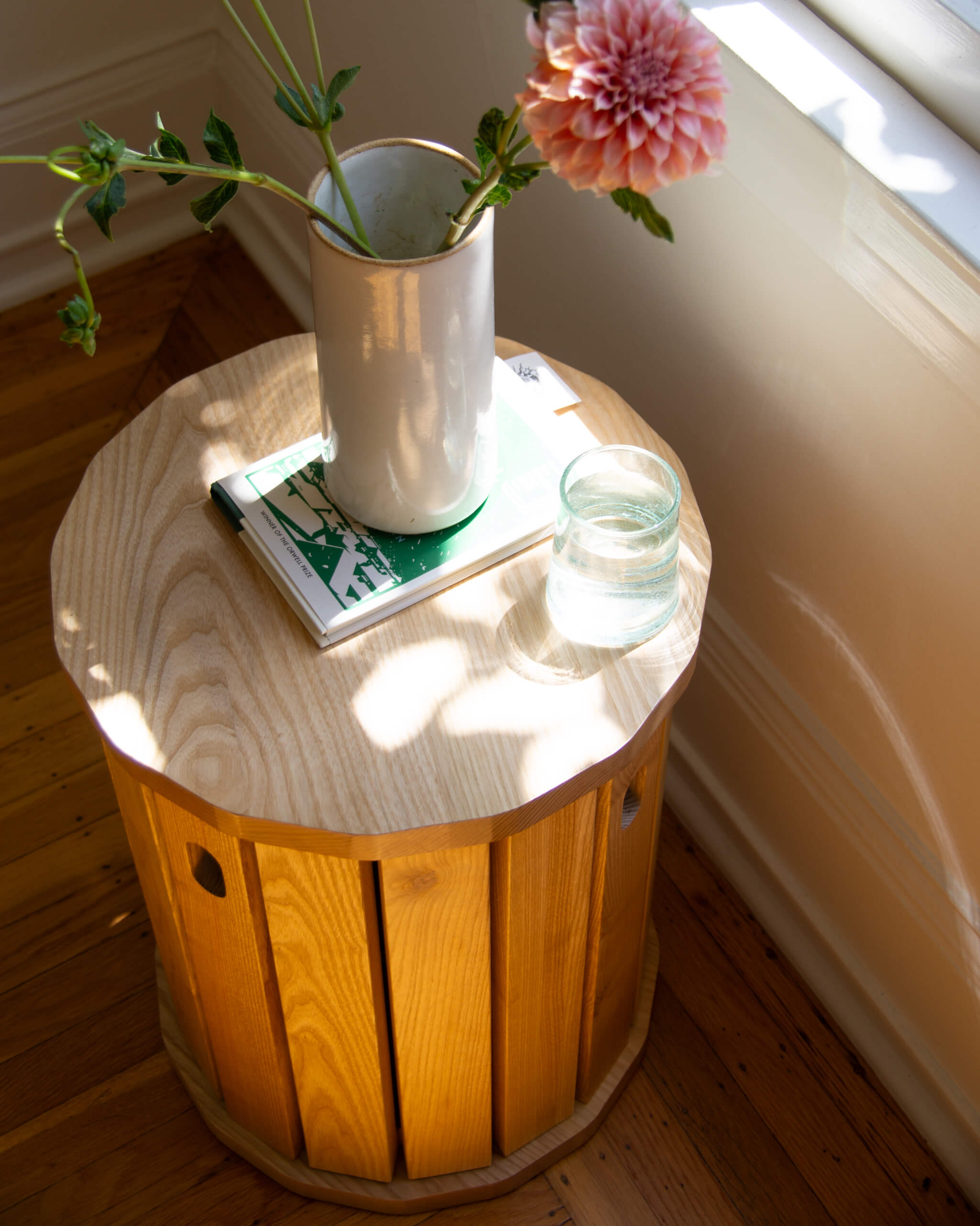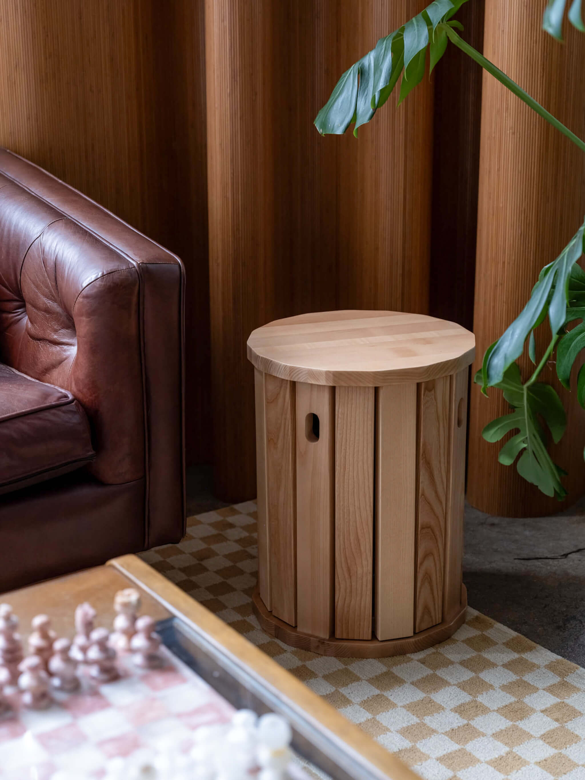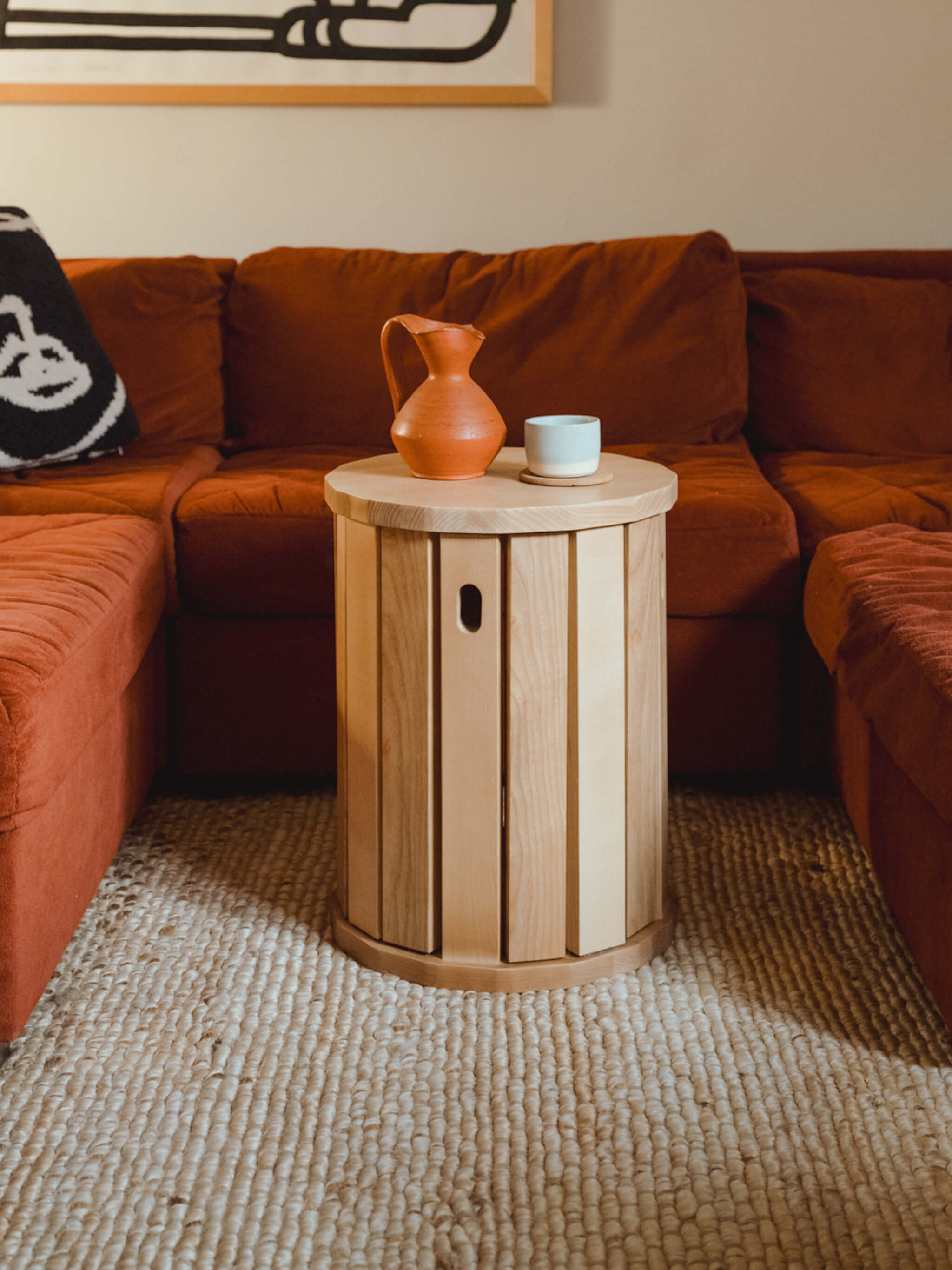 The Quartet is a side table that turns into four stools. This space saving and multi-functional piece was designed so you can easily invite friends over.
